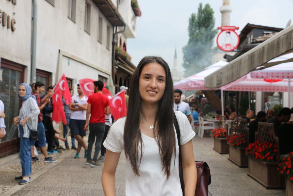 Merhaba ben Edanur İmanlı. 18 yaşındayım. Eyüpsultan Belediyesi’nin sunmuş olduğu bu güzel Kültür Gezimize katılmaya okul üçüncülüğü ile hak kazandım. Bugün gezimizin 4.gününde Bosna-Hersek Başçarşıda’yız. Buradaki leziz yemekleri tatma fırsatına şuan nail olduk. Hepinize teşekkür ediyorum bundan dolayı. En çok teşekkürü Başkanımıza ediyoruz.