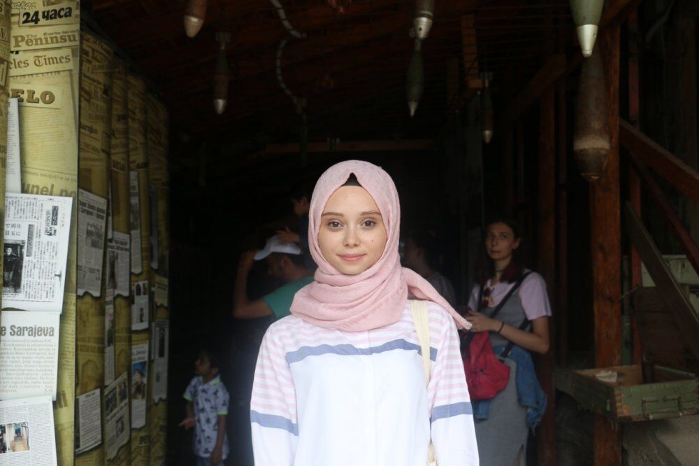 Sena Topaloğlu, 19 yaşındayım. Bugün Balkan Turu’nda 4. Günündeyiz. Başkent Saraybosna’da savaşın can damarı olan Yaşam Tüneli’ne geldik. Bu tünel Bosnalılar için belki de dönüm noktası olmuş. Burada gördüğümüz savaşın izleri, etkileri gerçekten insani boyutta çok büyük ders verici niteliği taşıyor. Her şey çok orijinal her şey daha taze ve yaşandığı gibi kalmış. Duygularımızı kelimelerle ifade edemiyoruz çünkü insani açıdan savaşın ne kadar acı verici ve zarar veren boyutunu görmüş olduk burada. Umarım hiçbir yerde, dünyanın hiçbir yerinde bir daha böyle acılar yaşamayız, acılar yaşanmaz. Çok teşekkür ederim.