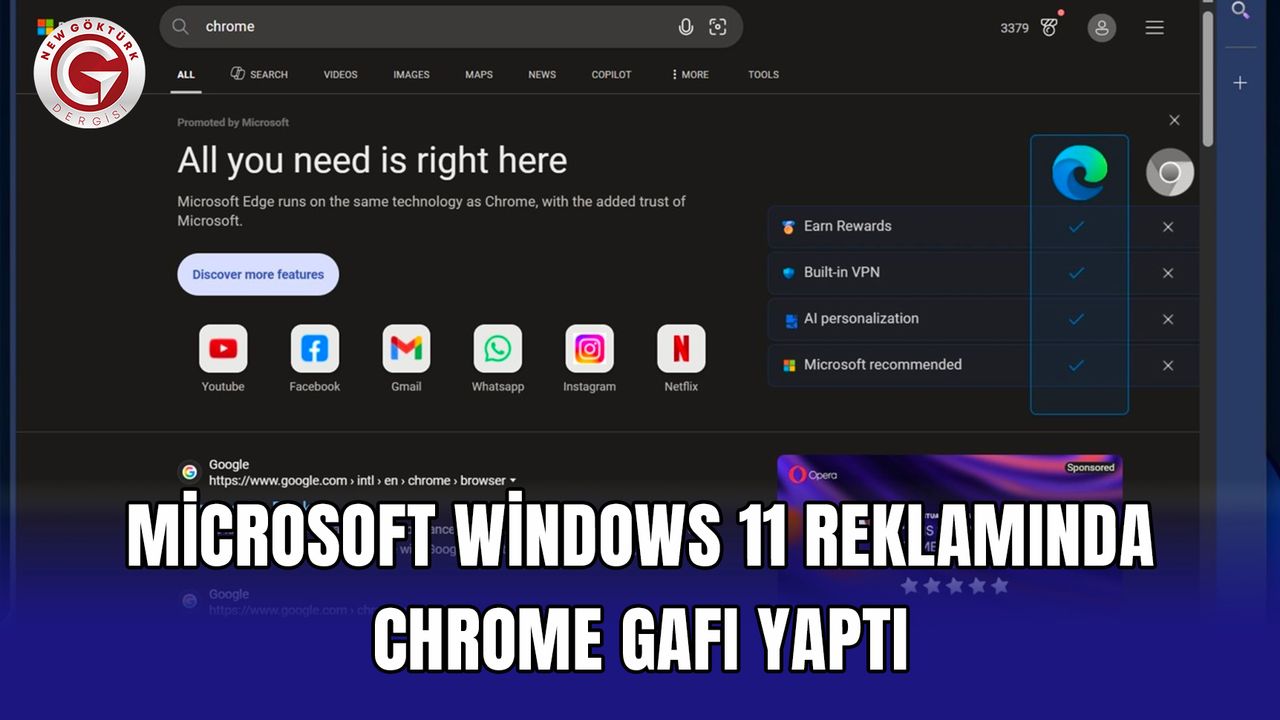 Microsoft cephesinden konuyla ilgili resmi bir açıklama gelmezken, yaşanan durumun kasıtlı bir tercih değil, reklam sürecinde yapılan bir hata olduğu değerlendiriliyor. Şirketin Chrome yerine kendi tarayıcısını öne çıkarma politikasını sürdürdüğü de bu düzenlemeyle bir kez daha netlik kazanmış oldu.