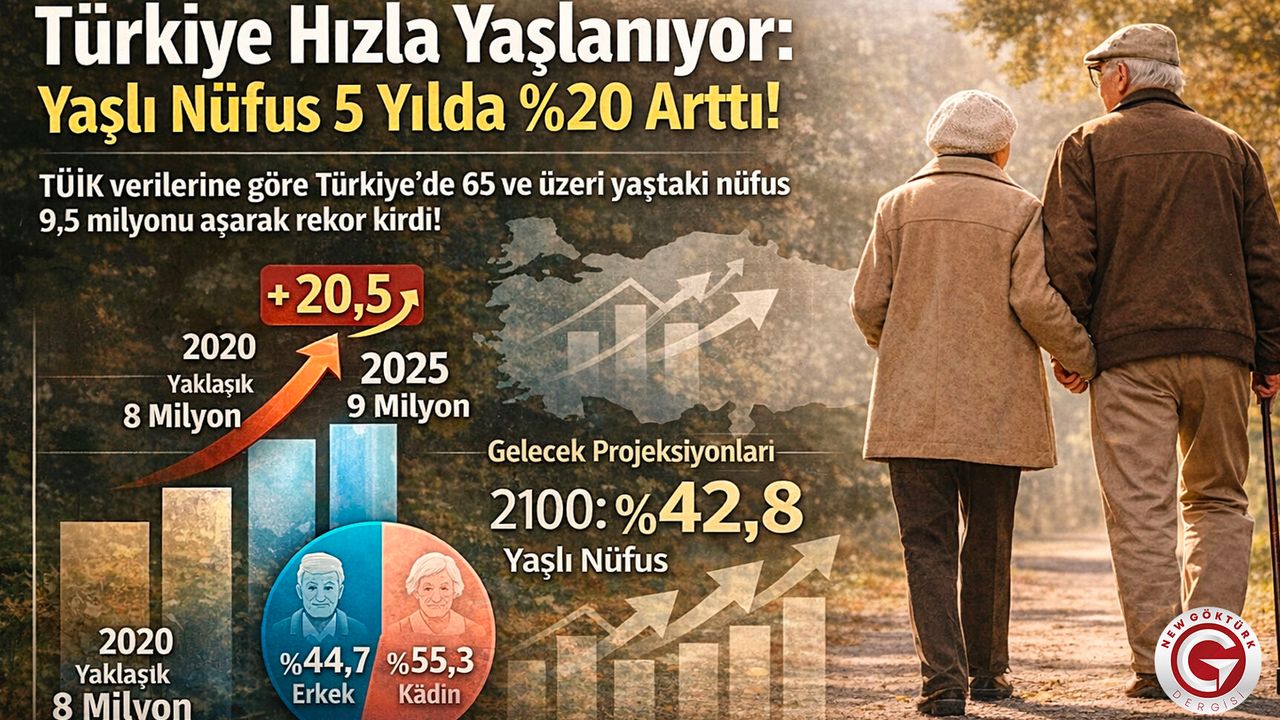 TÜİK verileri, Türkiye’de 65 yaş ve üzerindeki nüfusun 9,5 milyonu aşarak şimdiye kadarki en yüksek seviyesine ulaştığını ortaya koyuyor. Yapılan projeksiyonlar ise önümüzdeki yıllarda toplumun her üç bireyinden birinin yaşlı olabileceğine işaret ediyor.
